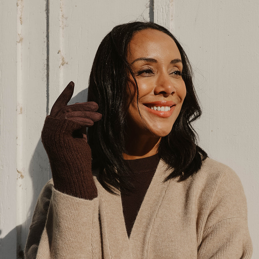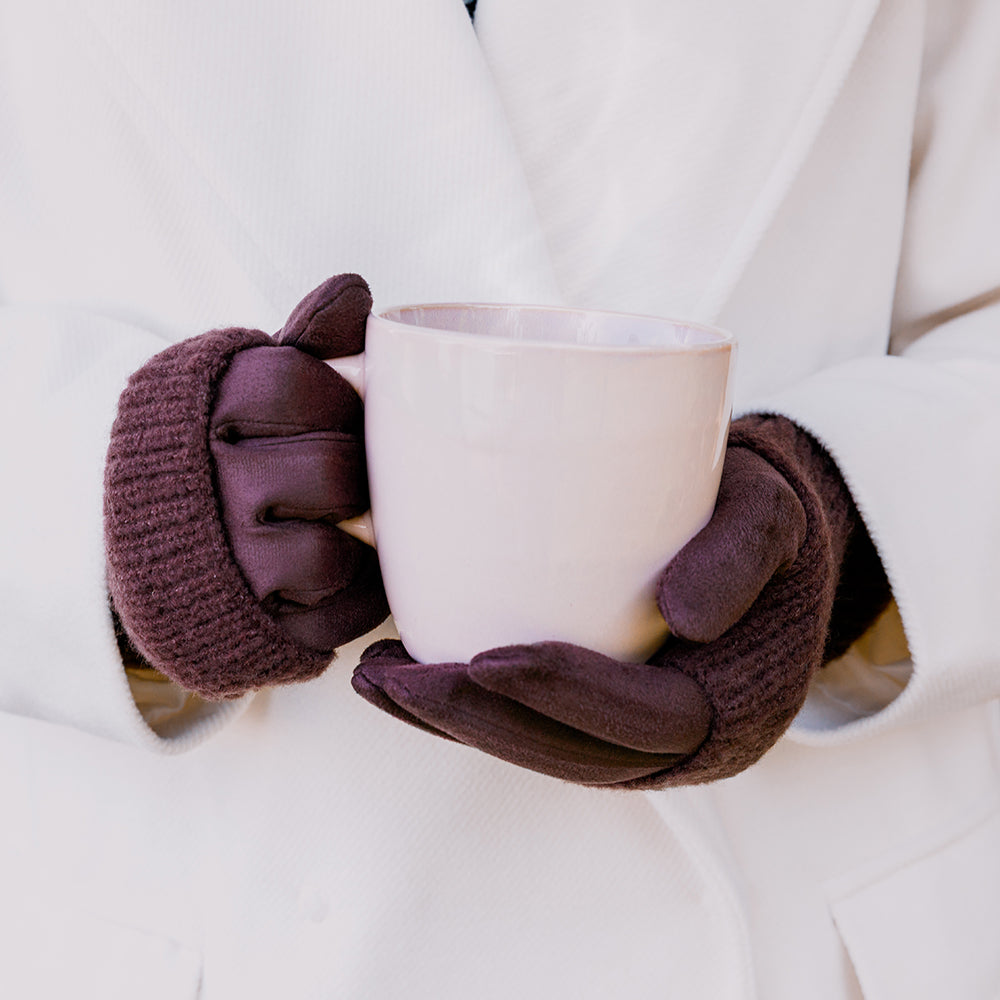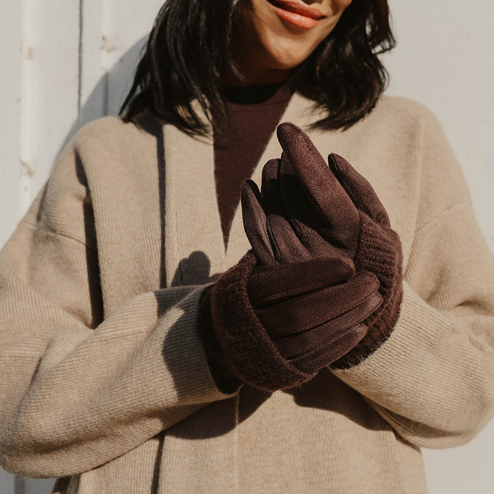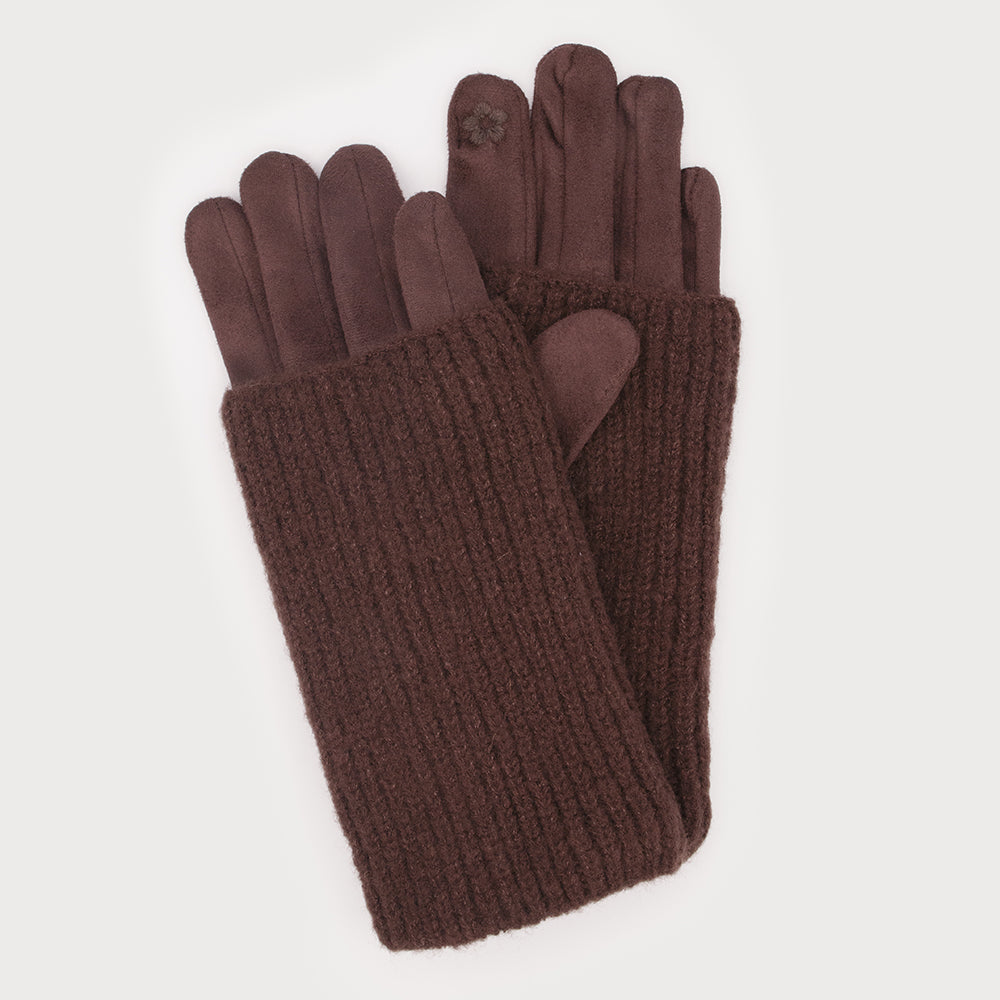 2-in-1 Chocolate faux suede gloves with wrist-warmers